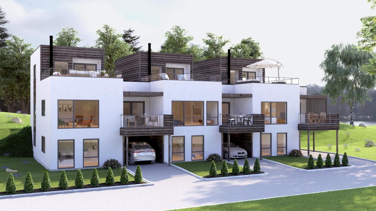 Bolig 1107 er basert på eneboligen LUNA plassert i rekke. Dette er en romslig bolig med moderne arkitektur og spennende bruk av byggematerialer. På denne modellen står man fritt til å velge antall enheter man ønsker, ut fra forholdene på tomten. Terrasser utenfor både kjøkken og loftstue, gir boligen det lille ekstra.